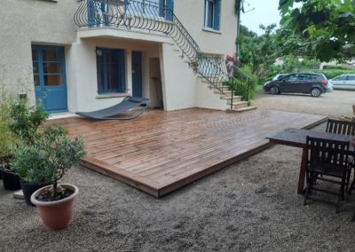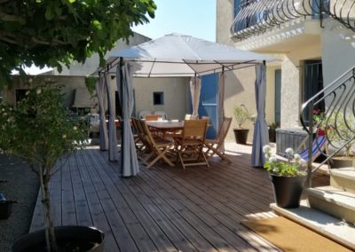 Esthétique et conviviale, cette terrasse en pin a été conçue de A à Z avec les clients. De la naissance du projet jusqu’à la réalisation, en passant par le choix du bois, cette terrasse a atteint son objectif : elle embellit la maison et permet d’accueillir les prochains invités. Des bancs assortis ont été réalisés par la suite par l’atelier CF.